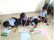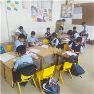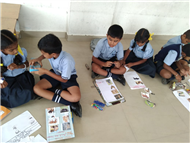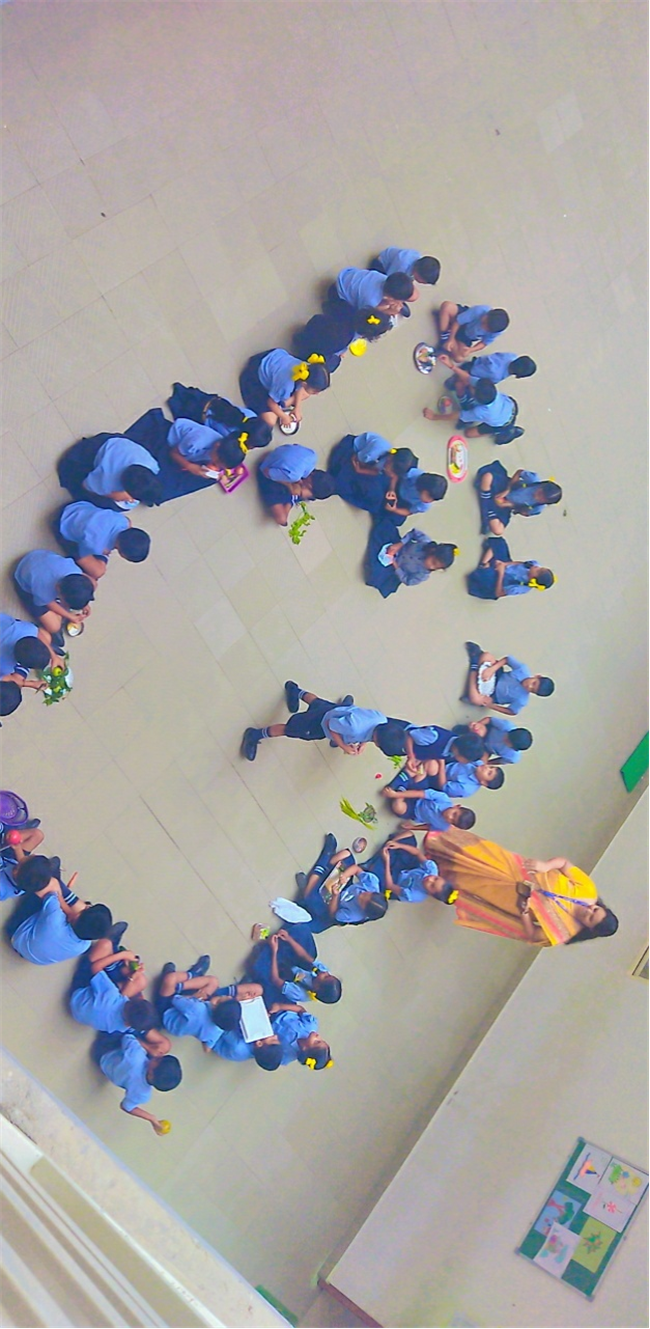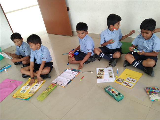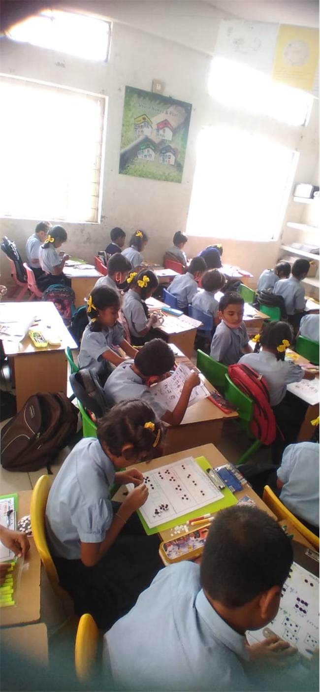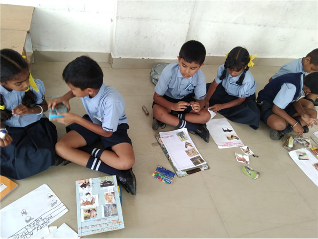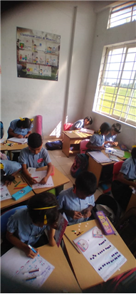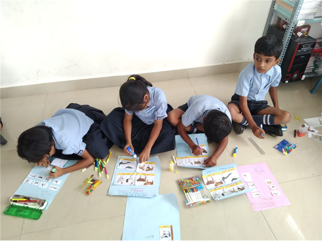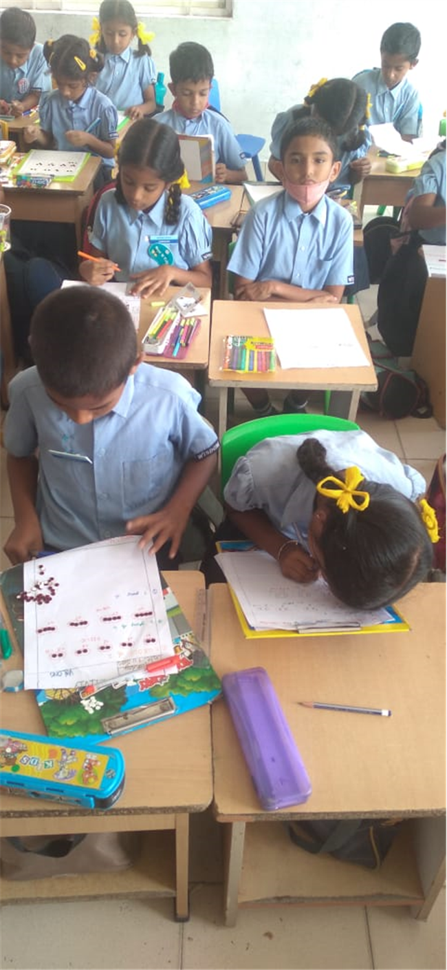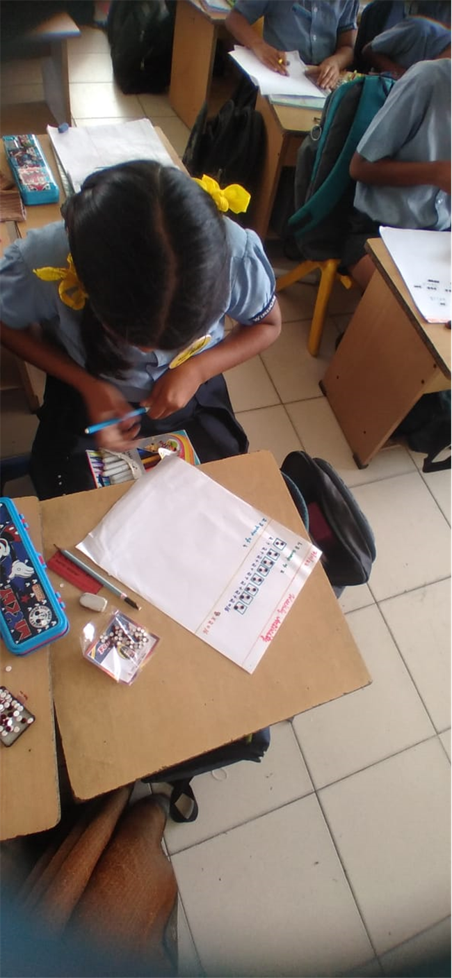Grade 2 students identify male and females of the animals and depict Multiplication sentence using bindi stickers.