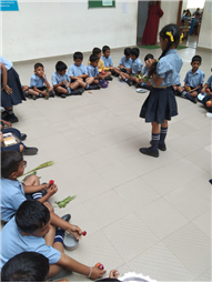 Grade 1 and 2 students show and tell a part of a plant and talk about it.
